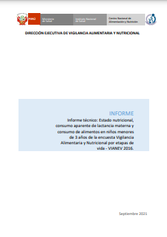 Informe Técnico: Estado nutricional, consumo aparente de lactancia materna y consumo de alimentos en niños menores de 3 años de la encuesta Vigilancia Alimentaria y Nutricional por etapas de vida - VIANEV 2016.