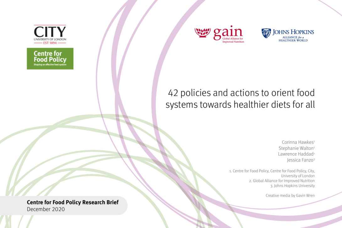 En este informe se exponen 42 políticas y medidas que pueden ayudar a que los sistemas alimentarios funcionen en pos de una alimentación más sana para todos. Incluye medidas que pueden hacer que los sistemas alimentarios mejoren su disponibilidad, asequibilidad, atractivo y aceptabilidad en los entornos alimentarios, y que se desvíen de los alimentos refinados pobres en nutrientes, los productos con un alto contenido de azúcares, grasas y/o sal (por ejemplo, los alimentos fritos que venden los vendedores ambulantes) y los snacks “ultraprocesados” envasados.