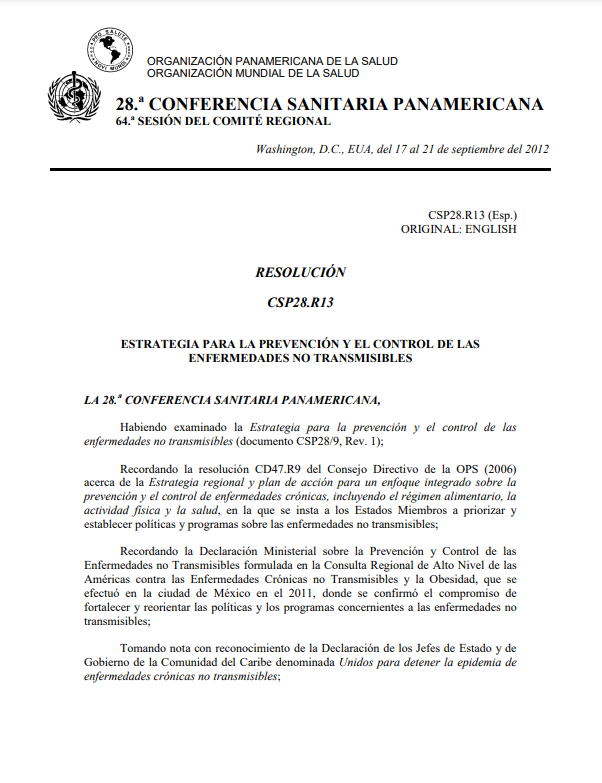 Resolución de Estrategia para la prevención y el control de las enfermedades no transmisibles
