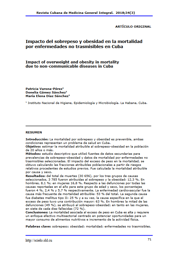 Impacto del sobrepeso y obesidad en la mortalidad por enfermedades no trasmisibles en Cuba