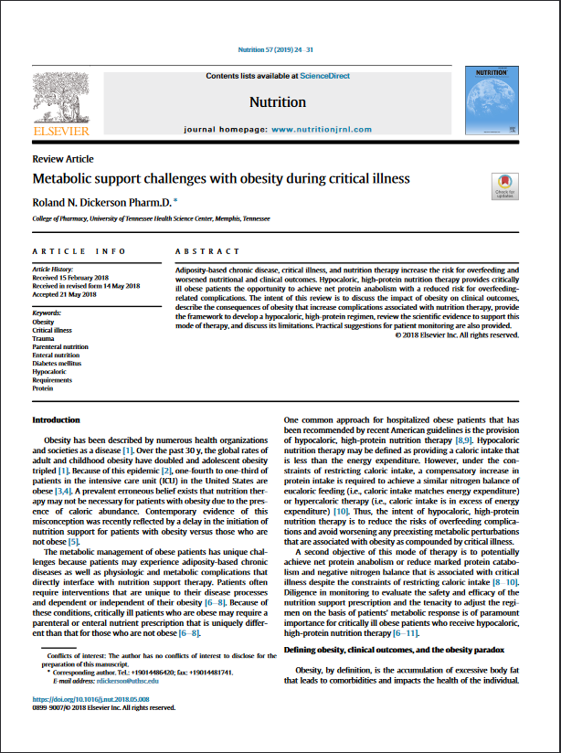 Desafíos de soporte metabólico con obesidad durante enfermedad crítica (2018)