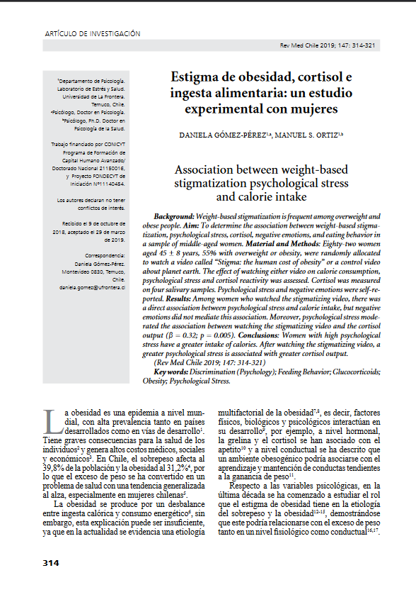 Estigma de obesidad, cortisol e ingesta alimentaria: un estudio experimental con mujeres (2019).
