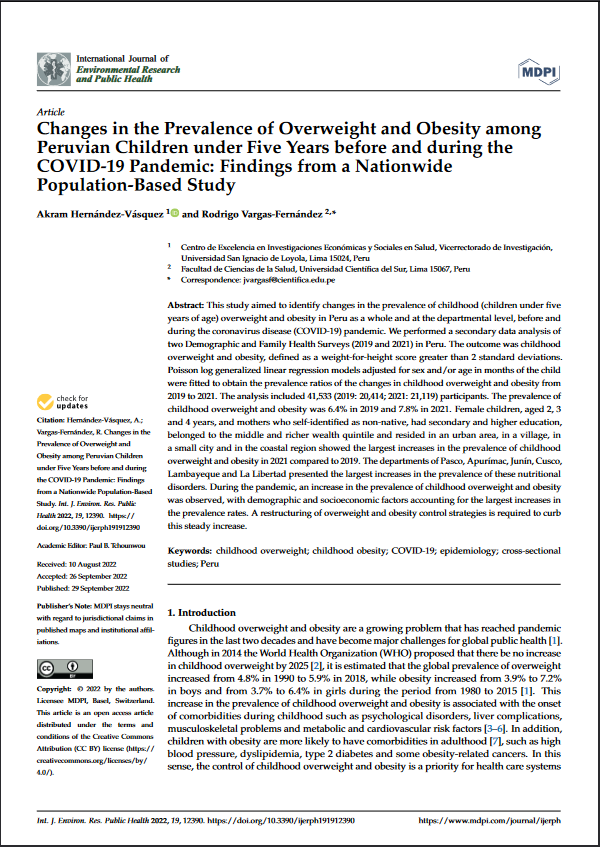 Cambios en la prevalencia de sobrepeso y obesidad en niños peruanos menores de cinco años antes y durante la pandemia de COVID-19: hallazgos de un estudio de base poblacional a nivel nacional