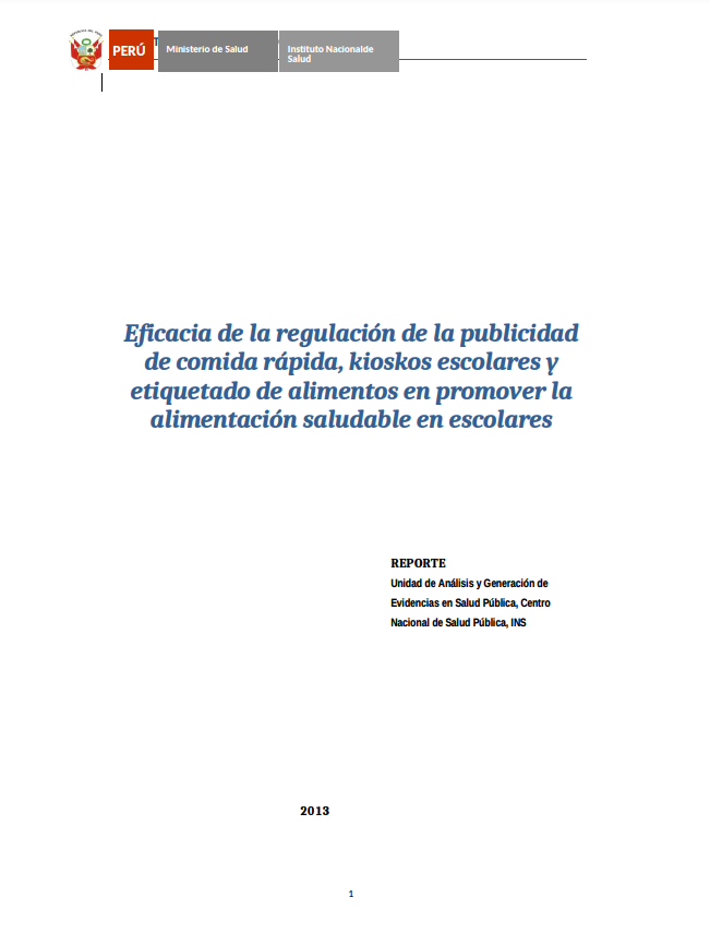 Eficacia de la regulación de la publicidad de comida rápida, kioskos escolares y etiquetado de alimentos en promover la alimentación saludable en escolares