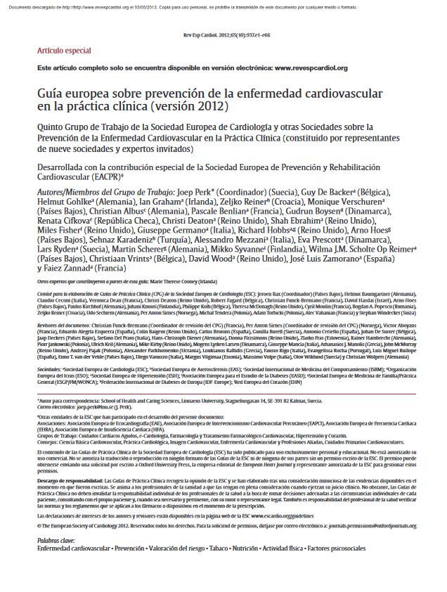Guía europea sobre prevención de la enfermedad cardiovascular en la práctica clínica (versión 2012)