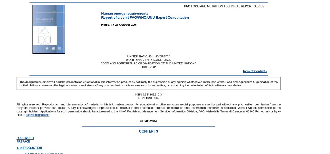 Since 1949, the Food and Agriculture Organization of the United Nations (FAO) and, since the early 1950s, the World Health Organization (WHO) have convened groups of experts to evaluate current scientific knowledge in order to define the energy requirements of humans and propose dietary energy recommendations for populations. The purpose of this information is to assist FAO and WHO in implementing their programmes. The United Nations University (UNU) became part of this joint initiative in 1981. The reports of these expert meetings (see the list of References at the end of this chapter) have become important guidelines on energy in human nutrition for academic scientists, nutritionists, physicians and other health workers, as well as for planners and policy-makers in both the agriculture and health sectors throughout the world.