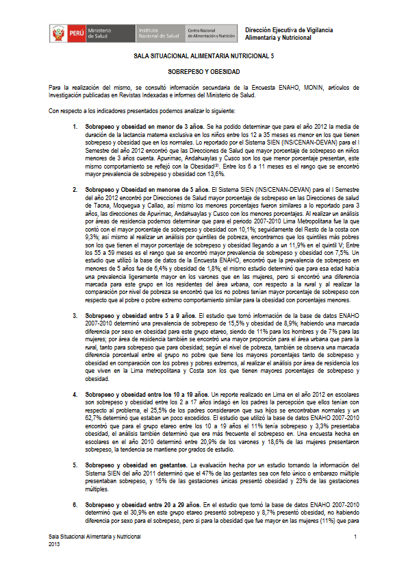 Sala situacional alimentaria nutricional: 5 sobrepeso y obesidad