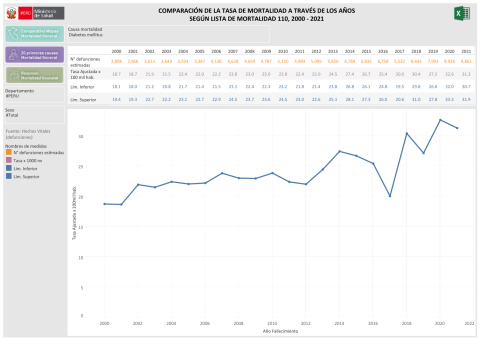 Tablero de comparación de la tasa de mortalidad a través de los años según lista de mortalidad 110, 2000-2021